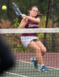 McKenna Bissman and Kelsie Wagner earned a 6-2, 6-1 win at No. 1 doubles over Loyalsock’s Lashlyn Sauers and Kaylene Kriner, which evened the match at 1-1. Loyalsock’s Kinsley Hill and Annalise Berger earned a No. 2 doubles win over Carrie Ditty and Riley Salizzoni, 6-0, 6-2, to put Loyalsock back ahead, 2-1.