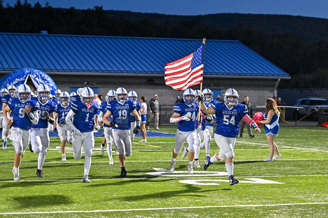 TIM WEIGHT/For the Express The Central Mountain football team takes the field before a high school football game against Mount Carmel on Friday, Oct. 10, 2025, at Malinak Stadium. The Wildcats fell 35-13.