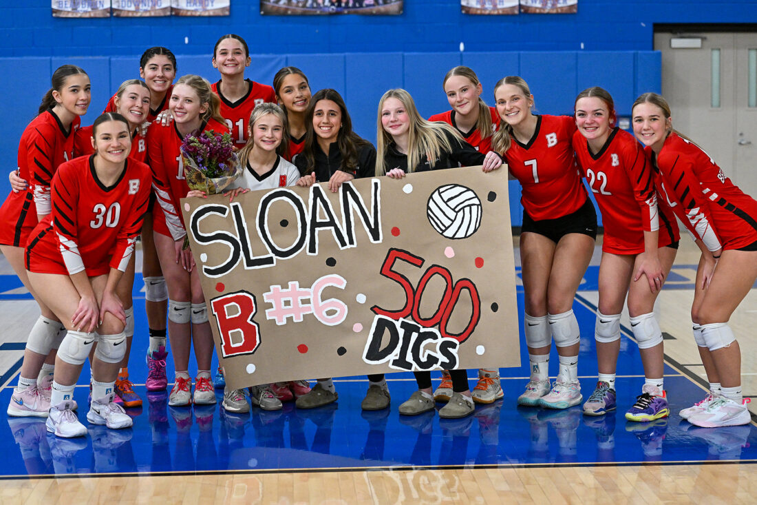 - TIM WEIGHT/For the Express Bellefonte’s Sloan Moore is honored for surpassing 500 career digs before a District 6 Class AAA semifinal matchup against Central Mountain on Monday, Oct. 27, 2025, at Central Mountain. The Red Raiders fell 3-0.