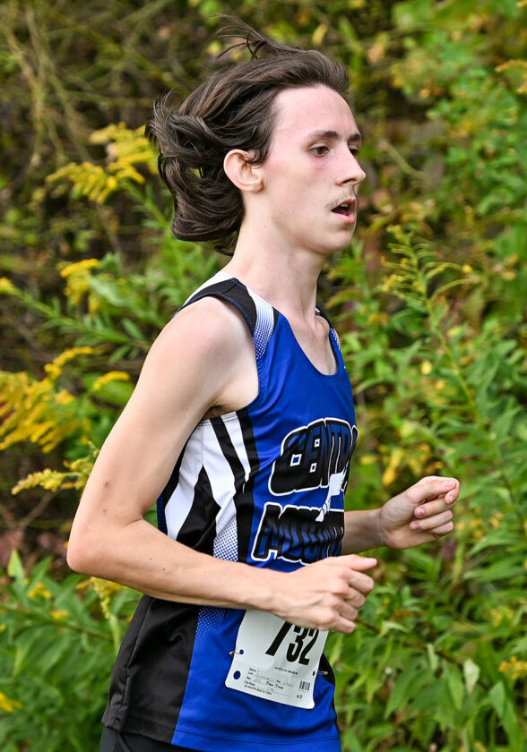 TIM WEIGHT/For the Express CM’s Damien Winner performs in a cross-country race at Lock Haven University on Tuesday, Sept. 16, 2025.