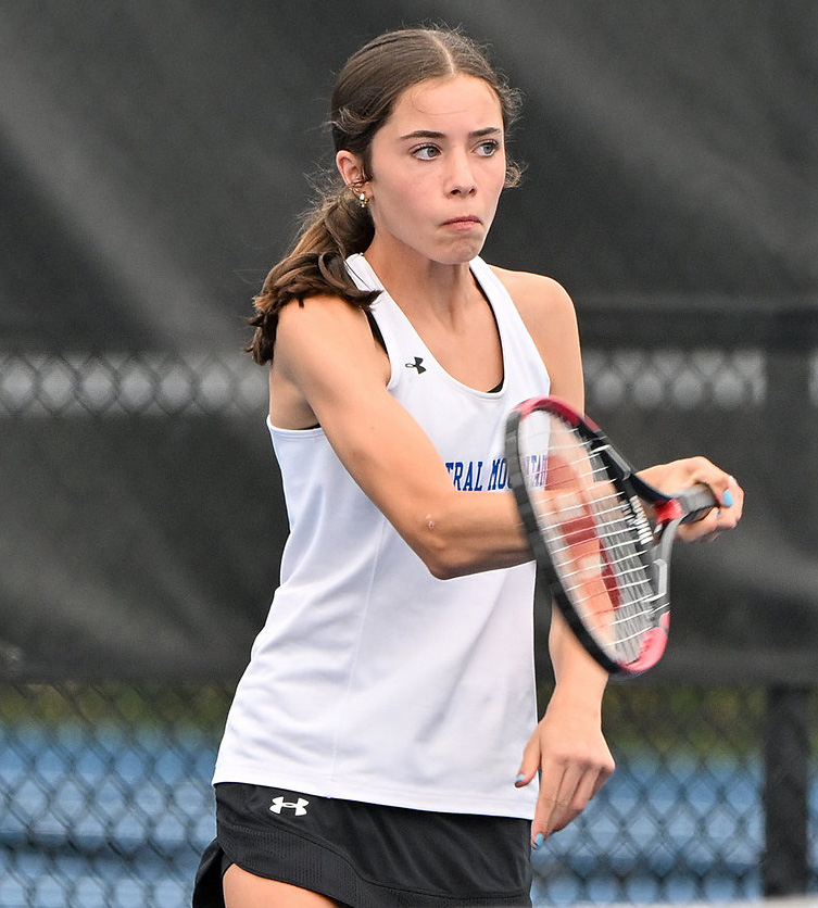 - TIM WEIGHT/For the Express CM’s Lacy Walker returns a ball during a girls tennis match vs. Jersey Shore on Monday, Aug. 21, 2025.