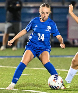 - TIM WEIGHT/For the Express CM’s Lily McGonigal (24) tries to evade a defender during a girls soccer game against Lewisburg on Tuesday, Sept. 23, 2025, at Malinak Stadium.