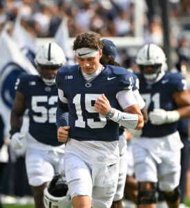 - TIM WEIGHT/For the Express Penn State’s Drew Allar (15) runs out with his teammates prior to a home football game against Villanova on Saturday, Sept. 13, 2025, at Beaver Stadium in State College. Since that 52-6 win, the team has gone 0-2.