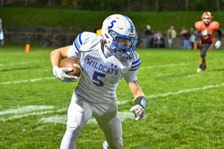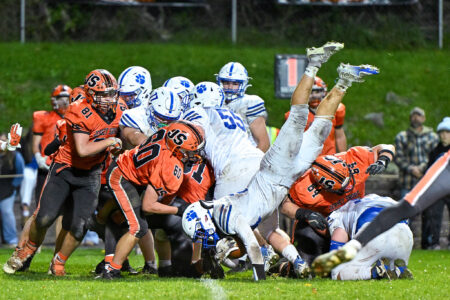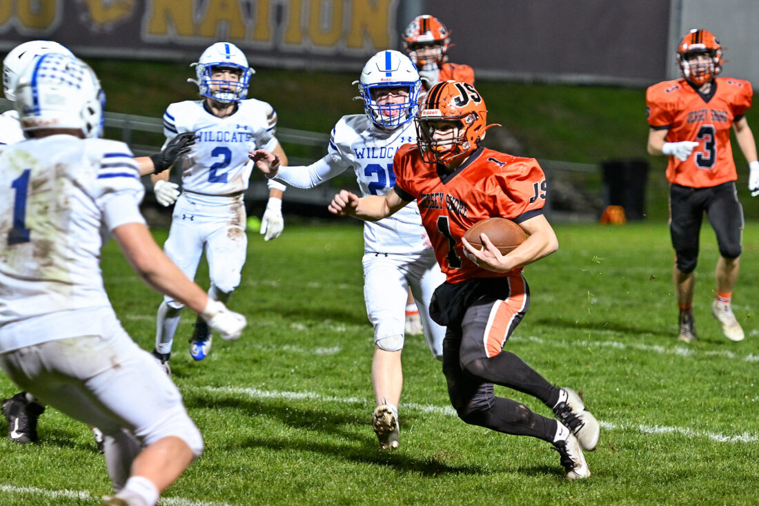 It was a blistering fast start for Jersey Shore on the field, putting up 42 points in the first quarter. Bo Sechrist was the hammer that did most of the damage, scoring on the first two drives of the game on one-yard touchdown runs. That fast start propelled the Bulldogs in a 63-26 win, as they improved to 7-3 to cap the regular season.