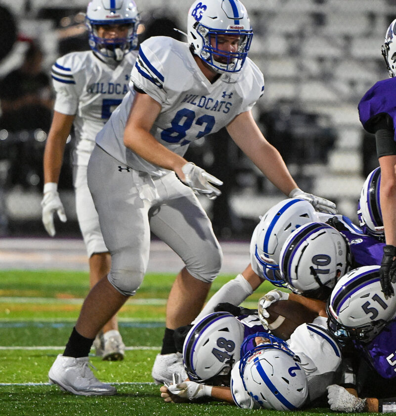 - TIM WEIGHT/For the Express Central Mountain junior Logan Hanna (83) smiles as he awaits the start of a song during the halftime show of a football game against Mifflin County on Friday, Aug. 22, 2025, at Marcel Paper Field in Lewistown.