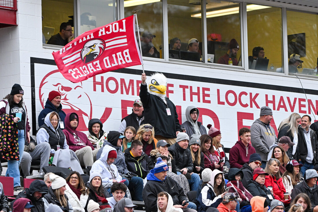- TIM WEIGHT/For the Express Lock Haven fans celebrate in the stands during a football game against Gannon on Saturday, Nov. 15, 2025, at Hubert Jack Stadium. The Bald Eagles won, 49-28, to clinch their first winning season since 1981.