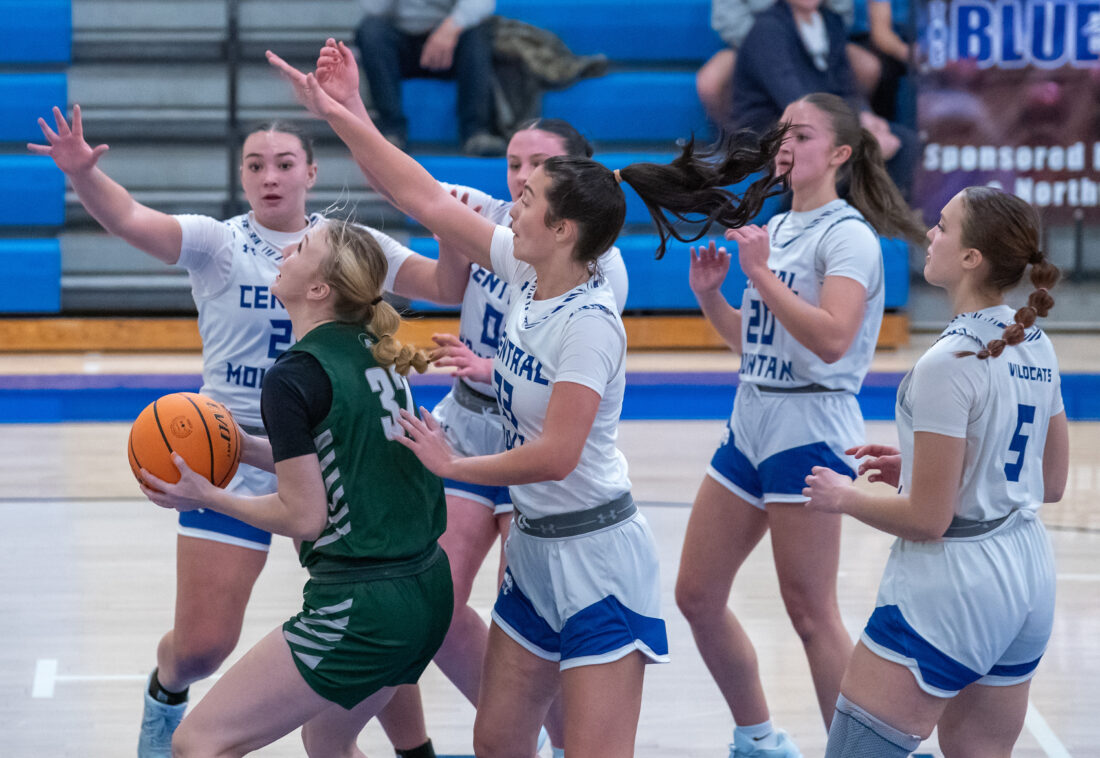 - Anna Easton of Hughesville passes over the defense of Central Mountain at Central Mountain High School. Hughesville won 65-40. DAVE KENNEDY/For The Express