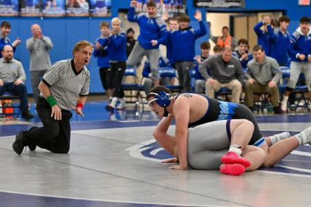 “I don’t think either team had their full lineups out tonight, but every time we wrestle Mifflin County, we know they’re going to give their best. It’s always a slugfest where you’re full strength or not, so credit to them for coming out and fighting.”