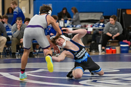 - TIM WEIGHT/For the Express Central Mountain’s Hayes Donley wrestles Mifflin County’s Jake Knable during a dual match against Mifflin County on Tuesday, Dec. 9, 2025, at Central Mountain. The Wildcats won 37-28.