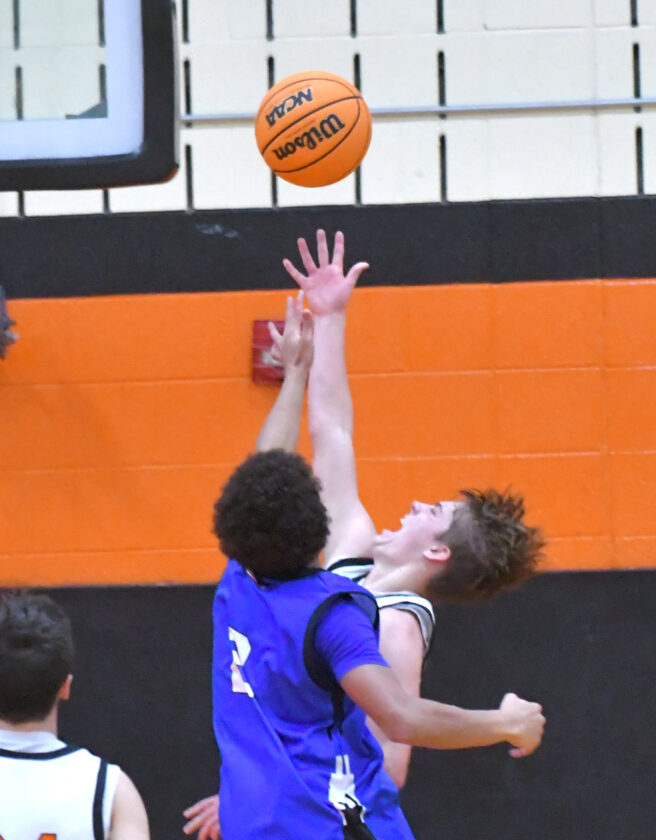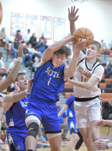 - MARK NANCE/For The Express South Williamsport’s Andrew Walter (1) rebounds the ball in front of Jersey Shore’s Kaihl Harlan (10) in the second quarter.
