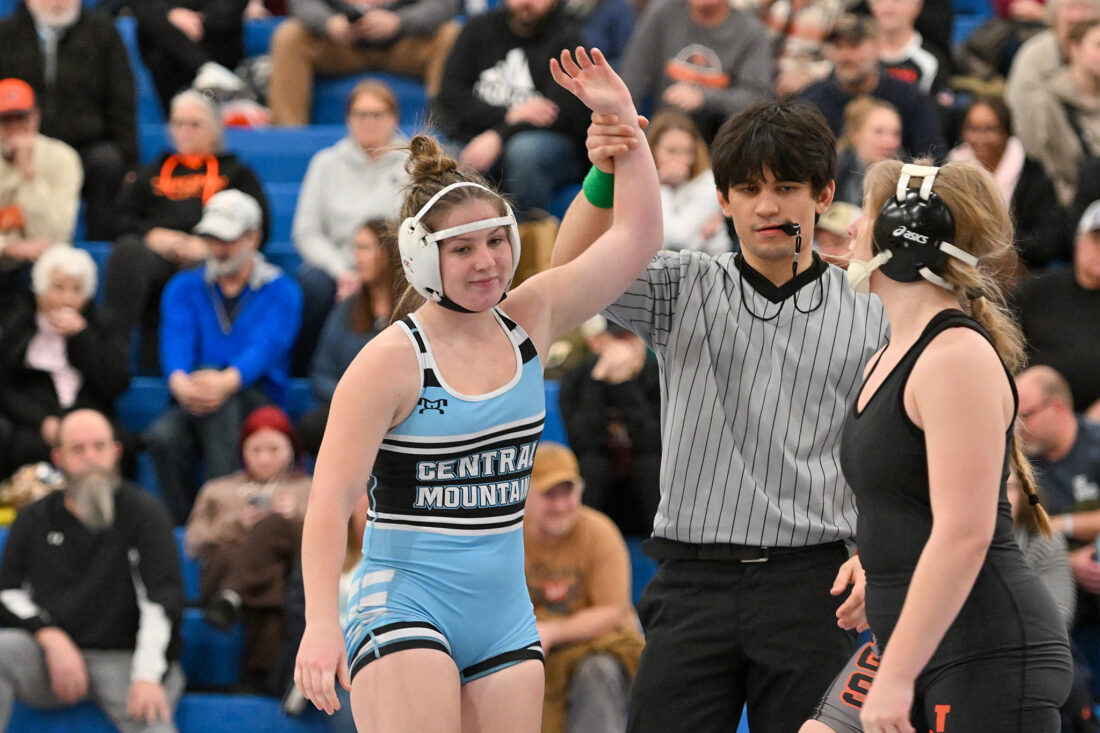 - TIM WEIGHT/For the Express Central Mountain’s Julia Hartman gets her hand raised during a girls wrestling dual against Jersey Shore on Thursday, Jan. 22, 2026, at Central Mountain. The Wildcats won 44-4.