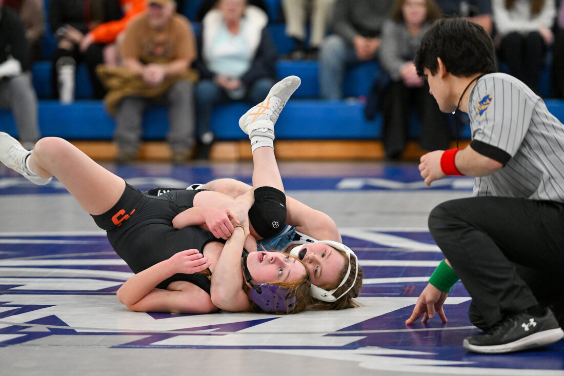 100: No contest. 106: No contest. 112: Emma Scarborough-Perez (CM) pinned Makenna Brininger (JS), 3:03. 118: Sadie Caris (CM) tech fall Jazzlyn Jolin (JS), 19-1 (4:00). 124: Aaralynn Kimble (JS) maj. dec. Kaitlyn Scarborough-Perez (CM), 13-2. 130: Kennedy Metzger (CM) dec. Chloe Corson (JS), 9-7. 136: Julia Hartman (CM) pinned Eliana Herr (JS), 4:24. 142: Alana Rhodes (CM) won by forfeit. 148: Austin Falls (CM) pinned Taylor Ross (JS), 2:50. 155: No contest. 170: Kendall Wagner (CM) pinned Isabella Gottschall (JS), 3:36. 190: Ashlyn Miller (CM) won by forfeit. 235: No contest.