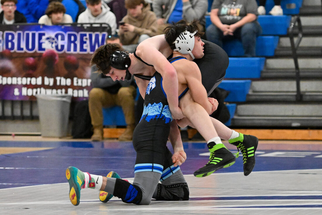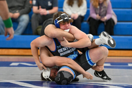 - TIM WEIGHT/For the Express Central Mountain’s Hayes Donley works a pin during a boys wrestling dual on Thursday, Jan. 22, 2026, at Central Mountain. The Wildcats won 64-6.