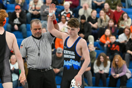 - TIM WEIGHT/For the Express Central Mountain’s Patrick Tarantella gets his hand raised during a boys wrestling dual on Thursday, Jan. 22, 2026, at Central Mountain. The Wildcats won 64-6.