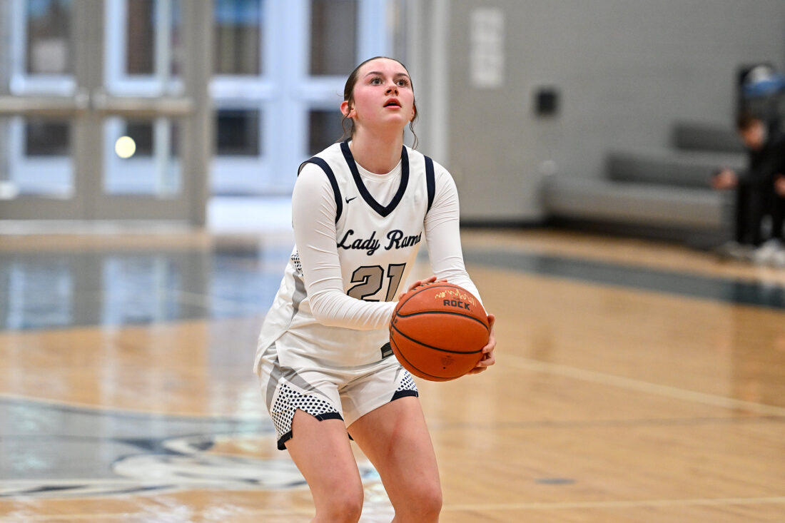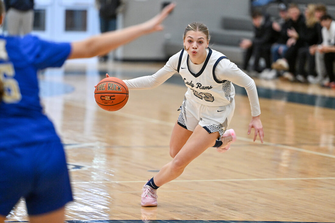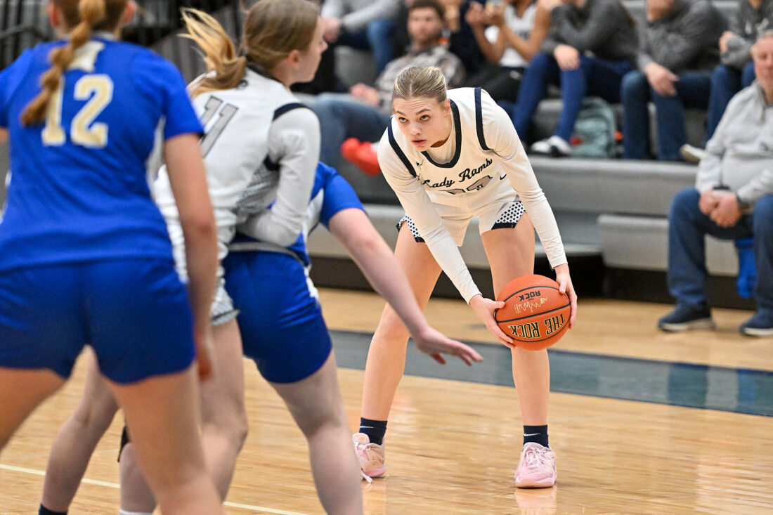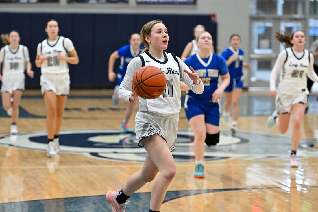 Following the triple, she was able to steal a pass from the Trojans and took it all the way up for the lay in. Teammate Lilly Smith then put her name in the scorebook as she pulled down an offensive rebound and got the put back, upping the Rams’ lead to 11-0 with 5:32 left in the first.