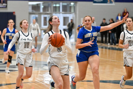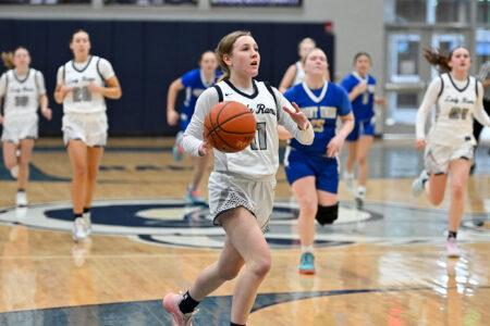 In the first quarter, Penns Valley had its transition game working full force as they scored off the opening tip, with Elle Romig taking the tip and going on to score an easy lay-up.