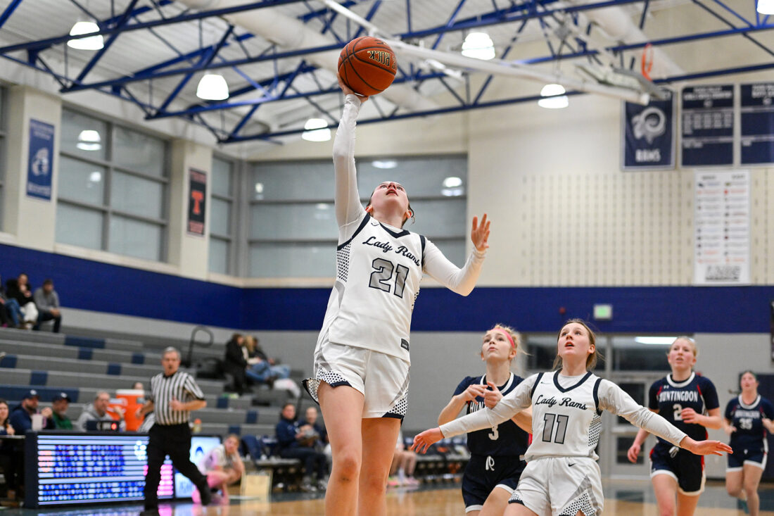 - TIM WEIGHT/For the Express Penns Valley’s Jordan Johnson (21) takes a layup on a fastbreak during a girls basketball game against Huntingdon on Monday, Jan. 19, 2026, at Penns Valley. The Rams won 67-47.