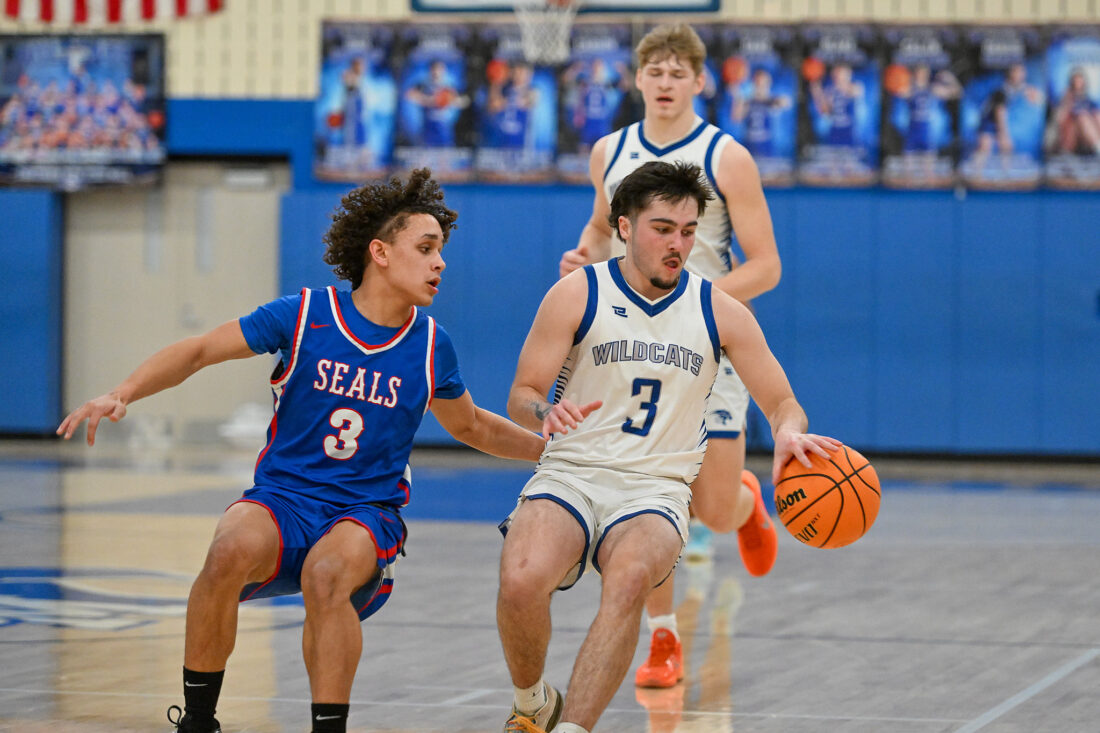 The foul opportunities would stall in the following quarter. And though baskets from Noah Wells and Collin Confer kept them within a basket of a lead, two missed free throws from Dane Hanna would prevent it from forcing a fourth lead change at 20-19. That’d be Central Mountain’s last chance to take a lead, as the Seals closed the half on a 7-2 run to go up 27-21, and the Wildcats never got within two with the ball again.