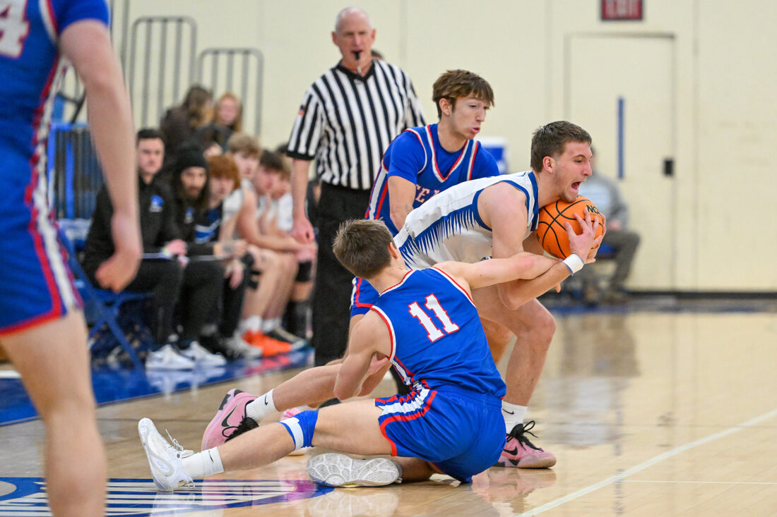 - TIM WEIGHT/For the Express Central Mountain’s Carson Corturiaux (4) fights for a loose ball during a boys basketball game against Selinsgrove on Saturday, Feb. 8, 2026, at Central Mountain. The Wildcats fell 64-50.