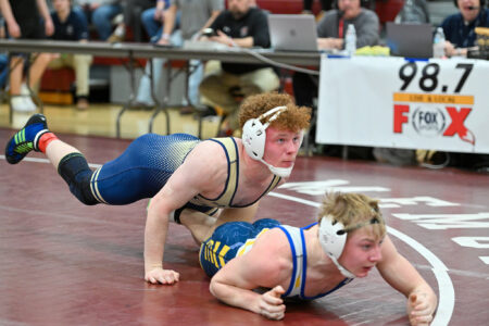 “I’m just thankful for the competition, honestly. I’m looking to get it back in two weeks, so that’s the plan – to wrestle him again and win next time,” said Guenot, referring to Bishop McCort’s Austin Carfley, who defeated him by 4-3 decision. “I’m kind of disappointed in myself, but it’s just fuel to the fire for me.”