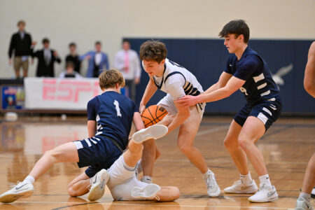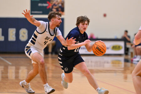 James Cowan was a strong force to be reckoned with down low for the Eagles, posting 11 points. Kane Wolf also helped keep the Eagles in the contest, scoring 11 points, with nine coming from beyond the arc.
