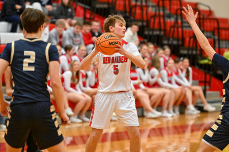 John Servant and Quinn Eckley Jones hit three threes each, finishing with 15 and 12 points respectively to lead the way for the Red Raiders. Grayson Coons rounded out the team’s three-pointers with one in the third. And Daxton Kreiger and Logan Gibson both finished with four points.