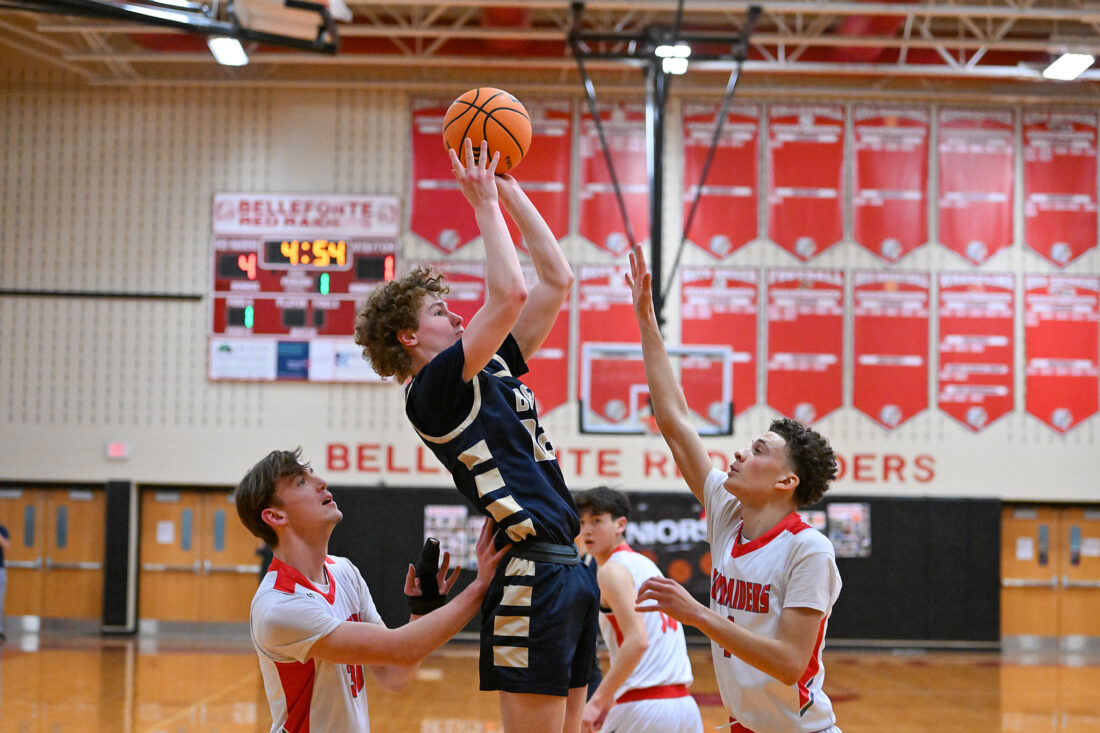 BELLEFONTE – After a neck-and-neck thriller through three quarters, something had to give in Monday’s rivalry matchup between Bald Eagle and Bellefonte boys basketball. The Eagles had a lead, but just a one-point one, as the Red Raiders hung around every step of the way.
