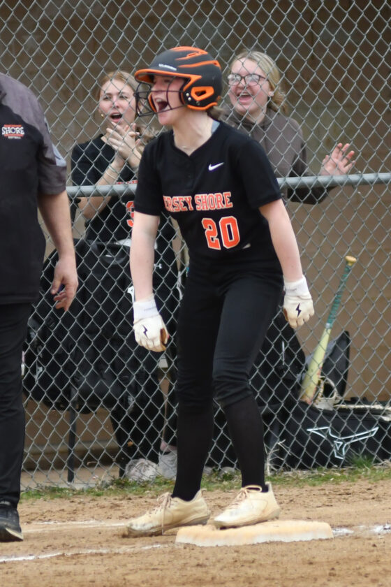 - MARK NANCE/Sun-Gazette Correspondent Jersey Shore’s Aubree Reichard (20) celebrates after hitting a triple with an rbi in the third inning.