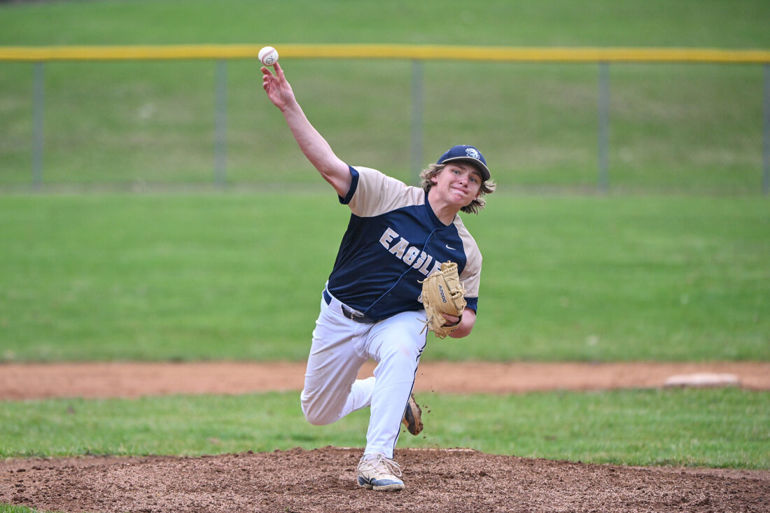 - TIM WEIGHT/For the Express Bald Eagle pitcher Riley Bucha throws during a high school baseball game against Penns Valley on Wednesday, April 1, 2026, at Penns Valley. The Eagles fell 6-4.