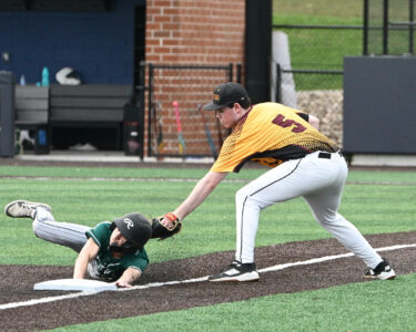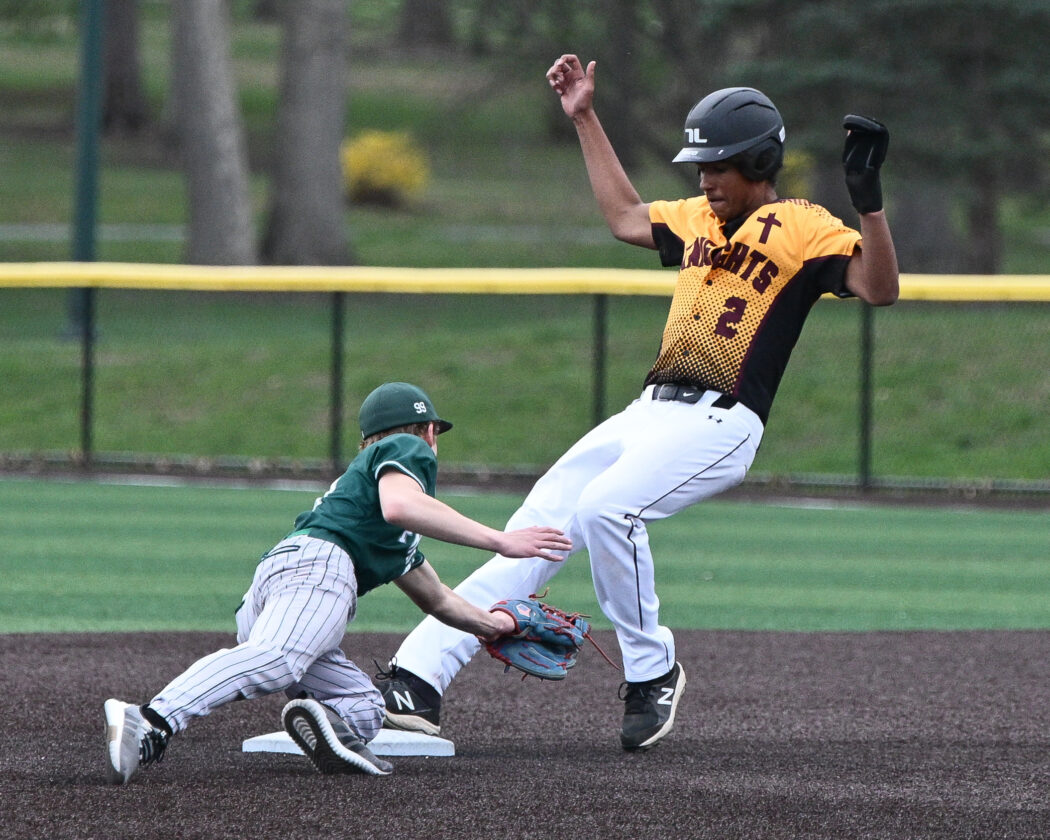 In the first inning with a runner on first, first baseman Bentley Andrus caught a foul pop-up before throwing that runner out returning to first. And in the fifth with a runner in scoring position, left fielder Ruger Dutrow caught a fly ball and fired it to shortstop Brody Swanger, who got it home just before Neumann’s Justin Crosby slid in for a run.