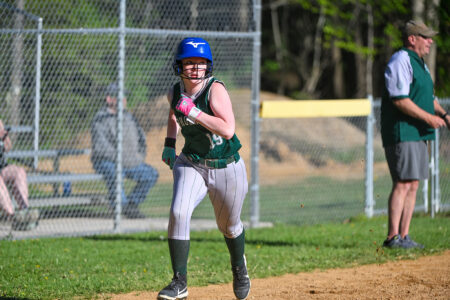 - TIM WEIGHT/For the Express Sugar Valley’s Cayln Harris (19) sprints for home during a softball game at against Bucktail on Monday, April 27, 2026. The Bucks won 18-1 in three innings.
