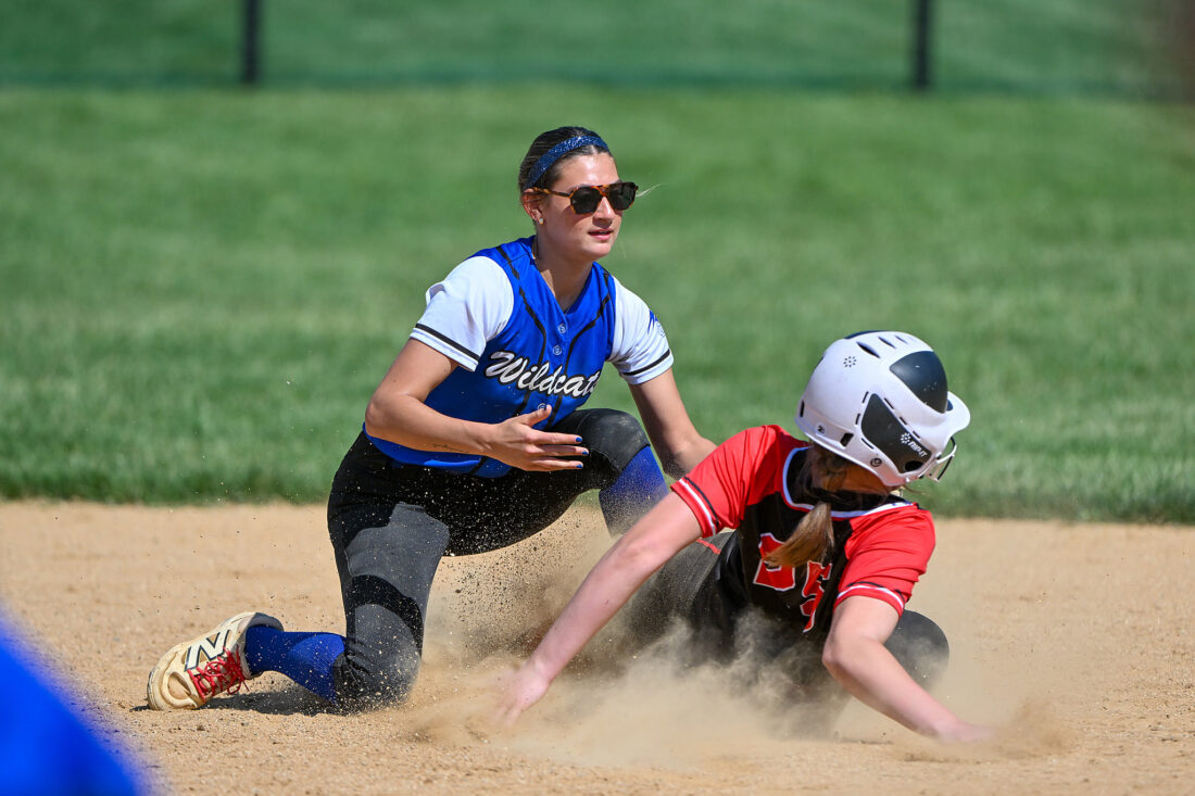 - TIM WEIGHT/For the Express Central Mountain’s Cirstyn Watson attempts to tag out a sliding DuBois runner during a softball game against DuBois on Friday at Bellefonte. The Wildcats won 6-3.