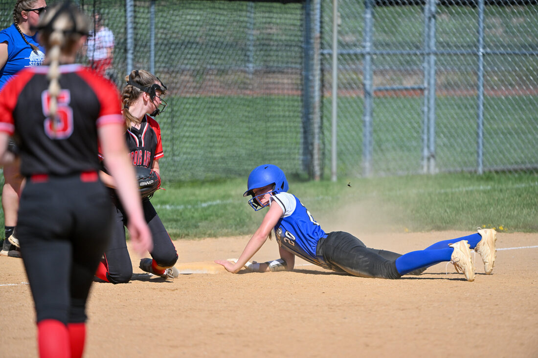 TIM WEIGHT/For the Express Central Mountain's Camdyn Weaver slides for third during a softball game against DuBois on Friday at Bellefonte. The Wildcats won 6-3.