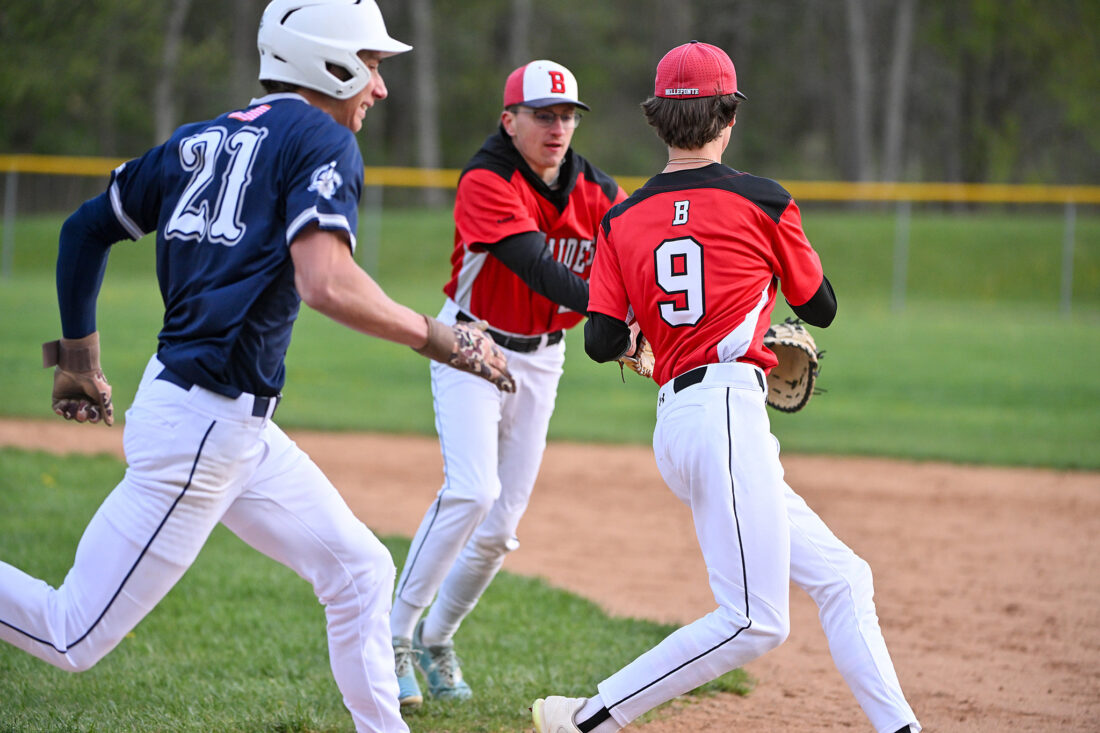 Against Penns Valley (1-10) on a cold Monday afternoon, balance was the key to dominance. Bellefonte’s top four batters led a potent offensive attack, combining for nine of the team’s 11 hits, while Carsen Henry pitched a three-hit shutout from the mound, factors which helped it roll to a 13-0, five-inning victory.