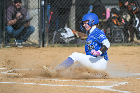 - TIM WEIGHT/For the Express Central Mountain’s Aubrey Eiler slides home for a run during a softball game against Jersey Shore at Central Mountain on Tuesday. The Bulldogs won 4-3.
