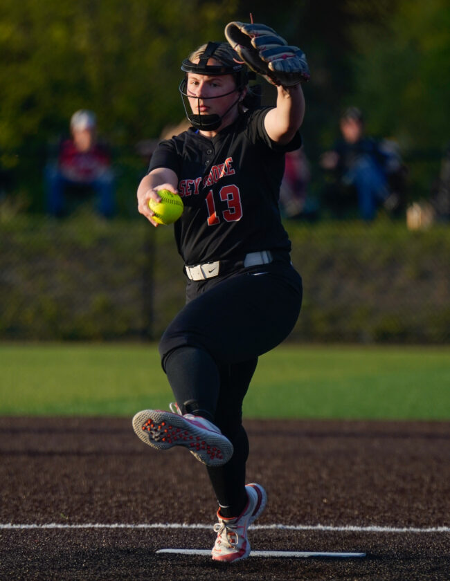 - Lexi Frey of Jersey Shore pitches to Williamsport in Williamsport Thursday evening. Williamsport won 13-1. DAVE KENNEDY/Sun-Gazette