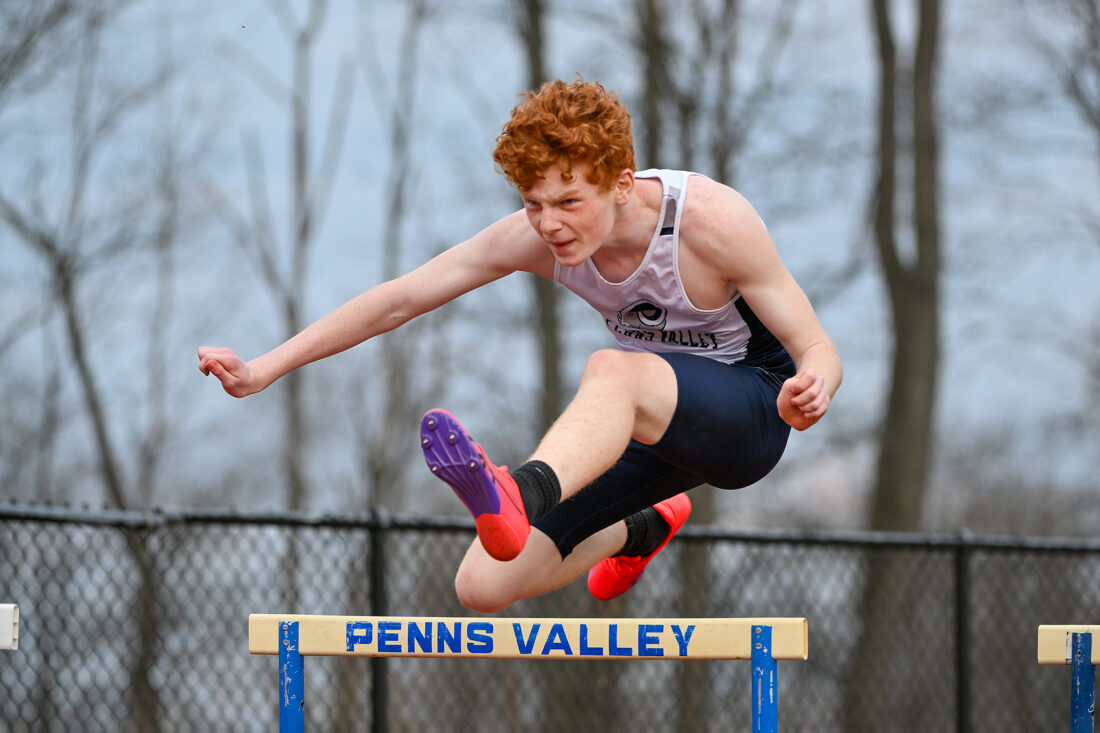 - TIM WEIGHT/For the Express Penns Valley’s Jase Hubler competes in a hurdles event during a quad meet against Hollidaysburg, Forest Hills and Greater Johnstown on Tuesday, March 31, 2026, at Penns Valley.