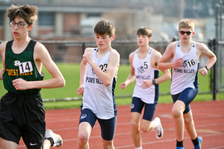 - TIM WEIGHT/For the Express Multiple Penns Valley athletes compete in a run during a quad meet against Hollidaysburg, Forest Hills and Greater Johnstown on Tuesday, March 31, 2026, at Penns Valley.