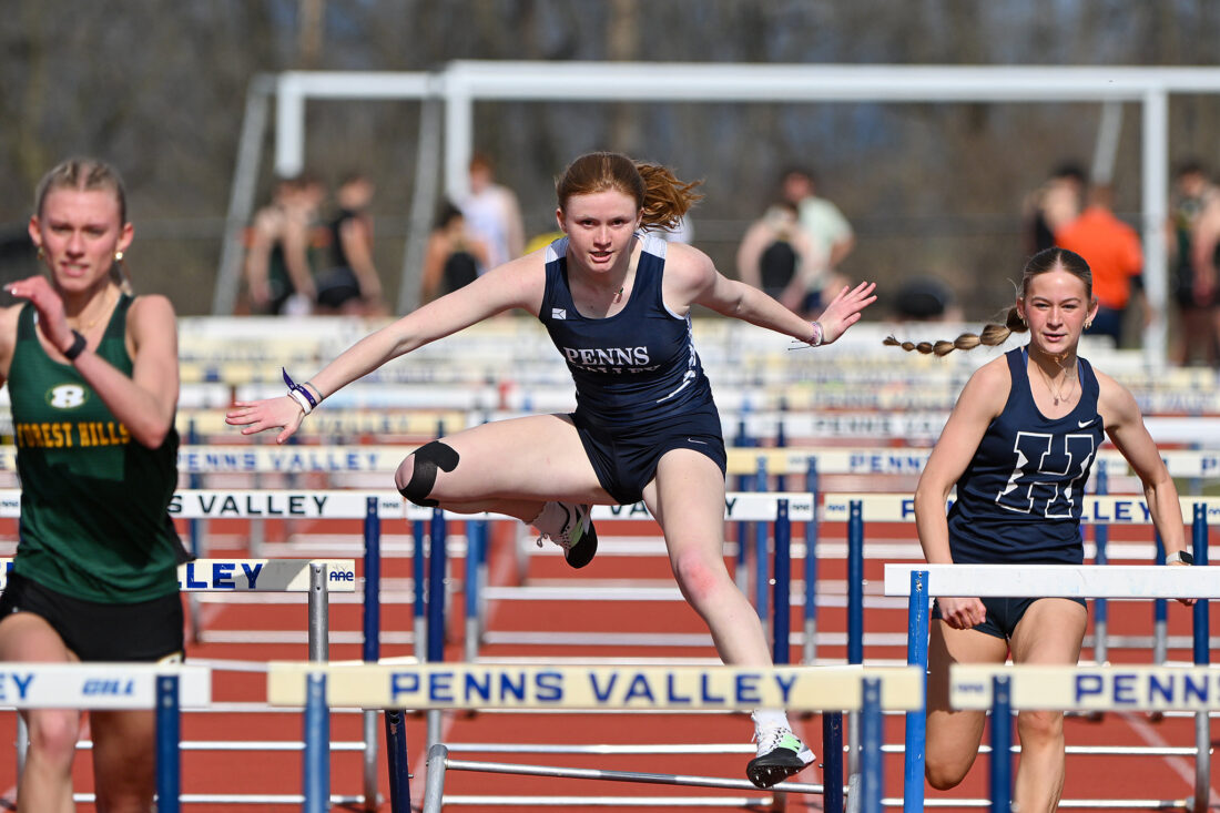- TIM WEIGHT/For the Express A Penns Valley athlete competes in a hurdles event during a quad meet against Hollidaysburg, Forest Hills and Greater Johnstown on Tuesday, March 31, 2026, at Penns Valley.