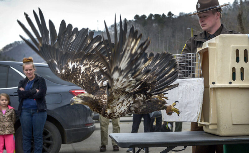 HINTON, W.Va. (AP) — Last October, a three-year-old bald eagle hunting for prey over an expanse of farmland near Greenville, in Monroe County, allegedly flew into a game farm’s tall wire fence, became entangled and struggled to free itself, breaking a wing in the process.