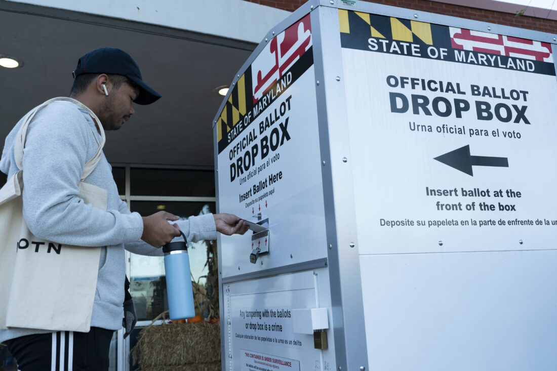 AP Photo/Jose Luis Magana, File A voter drops his ballot in a drop box at Marilyn J. Praisner Community Recreation Center, during Election Day on Nov. 8, 2022, in Burtonsville, Md.