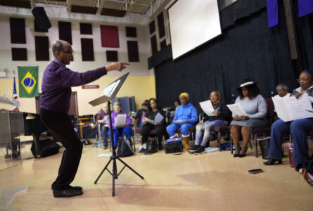 AP Photo/Jessie Wardarski Herbert V.R.P. Jones, the founder and director of The Heritage Gospel Chorale of Pittsburgh leads rehearsal at Bethany Baptist Church for a concert honoring the late gospel composer, musician and publisher, Charles Henry Pace, on Monday, March 6, in Pittsburgh.