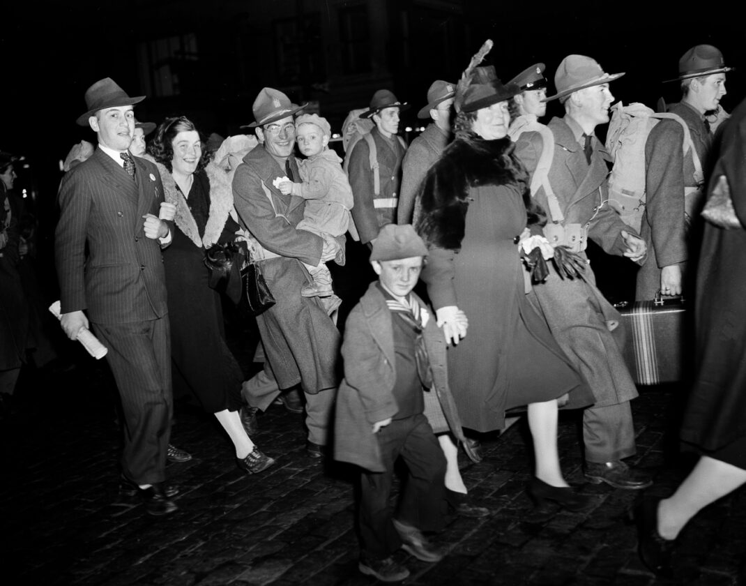 The 27th Division begin to leave town at New York’s Pennsylvania Station for Fort McClellan in Alabama, Oct. 21, 1940. More than 500 relatives and friends were on hand to see five units entrain. There were tears as well as cheers.