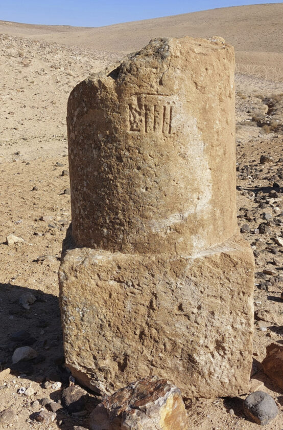Adam PaZout/Itiner-e via AP This photo provided by Adam Pažout shows a fragment of a Roman milestone that was erected along the road Via Nova Traiana in Jordan.
