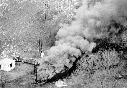 - FILE – Dense smoke pours from the Mod’s Run air vent of the No. 9 mine, where 78 miners were killed as a result of the mine explosion near Farmington, W.Va., Nov. 21, 1968. (AP Photo/File)