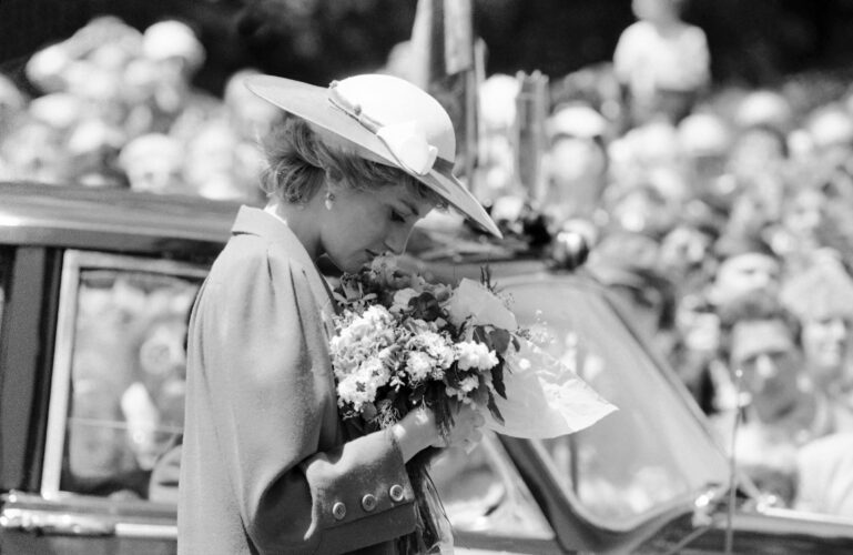 AP Photo/Jim Bourdier Princess Diana takes a moment to smell the flowers she was given in Melbourne, Australia on Sunday, Nov. 3, 1985.